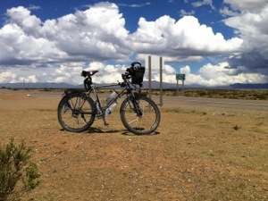 Breve sosta all’ombra e riprendiamo a pedalare, manca poco al confine e ora il vento ci é amico